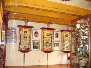 Das Brilmuseum ist eine gelungene Mischung aus anspruchsvollem Museum und Shop für ausgefallene Fassungen vergangener Tage. Mijke Teunissen ist eigentlich Architektin und hat das Augenoptiker Handwerk an sich nicht erlernt. Trotzdem ist sie in die Fußstapfen ihrer Vorfahren gestiegen und ist zur Spezialistin für extravagantes Brillendesign vergangener Zeiten avanciert. „Wenn ein Optiker sein Geschäft zusperrt kaufe ich immer wieder dessen Fassungen für Shop-Verkauf und Museum ein“, verrät Teunissen.