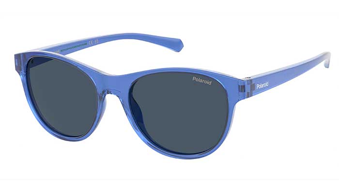 PLD D 8066/S: Die Sonnenbrille aus Öko-Polycarbonat für Jungen Jahren hat eine komfortable runde Form, deren Bügel mit dem POLAROID-Logo versehen sind.