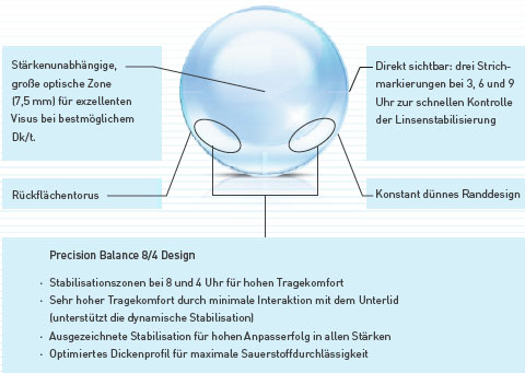 - Die Anpasseigenschaften und Achsenstabilisierung der Kontaktlinsen bleiben von Träger zu Träger zuverlässig konstant