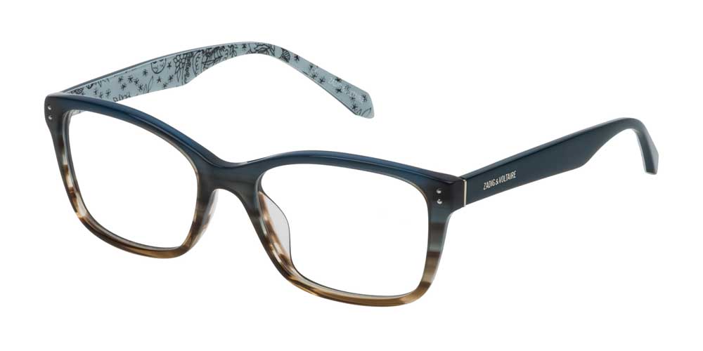 Die auffällig „mächtigen“ Fronten werden zum einem mit aufgesetzten Bolzen und Nieten versehen für einen Rock ’n‘ Roll Look. Weitere Inhalte der Kollektion sind leichte minimalistische Edelstahlmodelle sowohl im Sonnen- als auch im Korrektionsbereich. Die Sonnenbrillen weisen flache Glaskurven auf, teilweise auch verspiegelt. Die Formen gehen vom klassischen Aviator- über Oversize- bis hin zum Cat-Eye-Look. Abgerundet wird die ZADIG&VOLTAIRE Kollektion durch eine enorme Unterstützung des Augenoptikers am POS in Form von Thekendisplays, Bannern, großen Schaufensterdisplays bis hin zur individuellen Schaufensterfolie.
